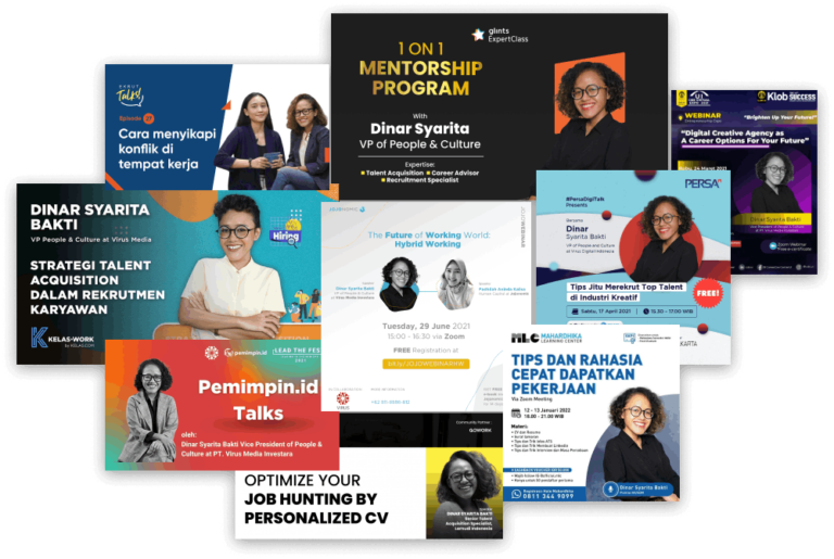 Perempuan dengan nama lengkap Dinar Syarita Bhakti ini sudah menjadi praktisi HR selama bertahun-tahun, diantaranya sebagai Senior Talent Acquisition Specialist di Lamudi.co.id, Recruitment Specialist & Employer Branding Officer di kumparan, Career Advisor di RGF Human Resources Agent Indonesia, Human Resources Manager di NatureForex Ltd, dan masih banyak lagi!