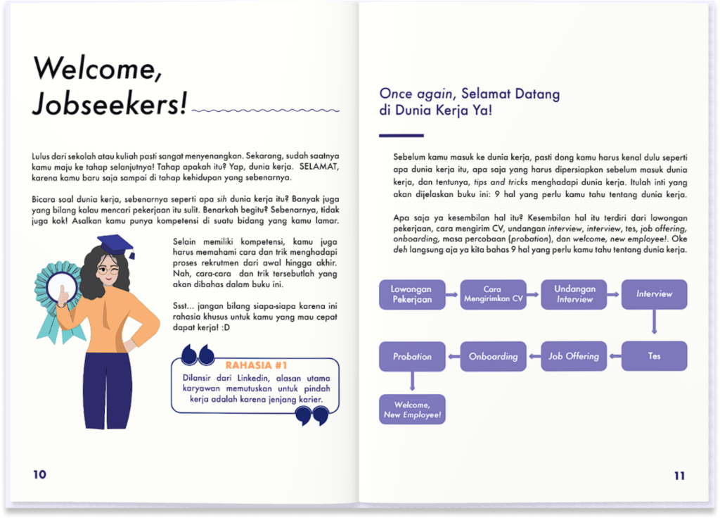 “E-book ini sangat membantu saya untuk mendapatkan pekerjaan yang sesuai passion. Meskipun semua itu nggak lepas dari usaha kita, tapi E-book ini berperan besar dalam menambah wawasan saya tentang menulis CV dan menghadapi interview.”
