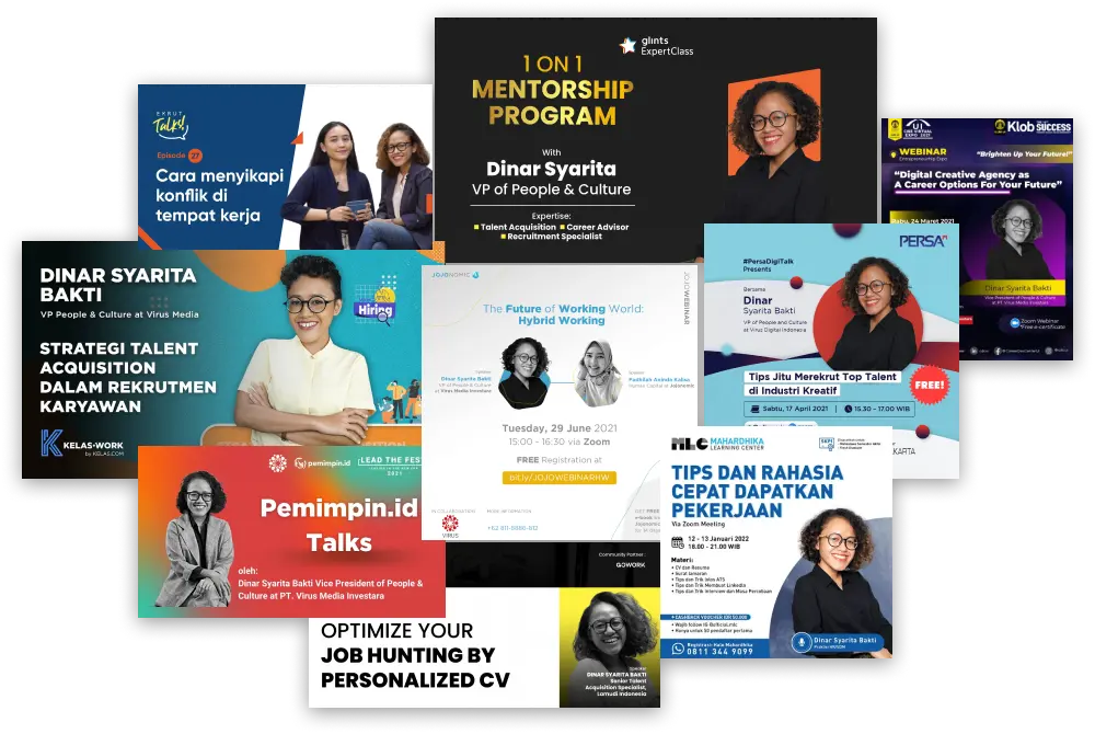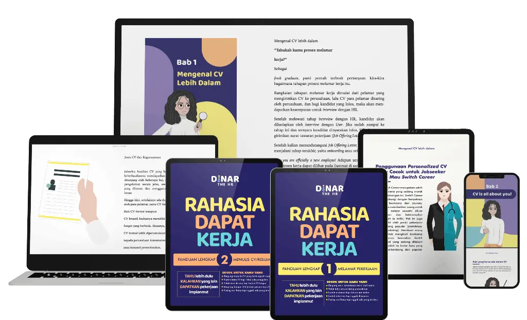 “Terimakasih DinarTheHR! Berkat E-book ini, saya memiliki perspektif yang baik tentang dunia kerja dan bagaimana cara mendapatkan posisi pekerjaan yang saya impikan. Saya juga selalu memperbaiki CV dan pengalaman saya berkat tips-tips di dalam E-book ini.